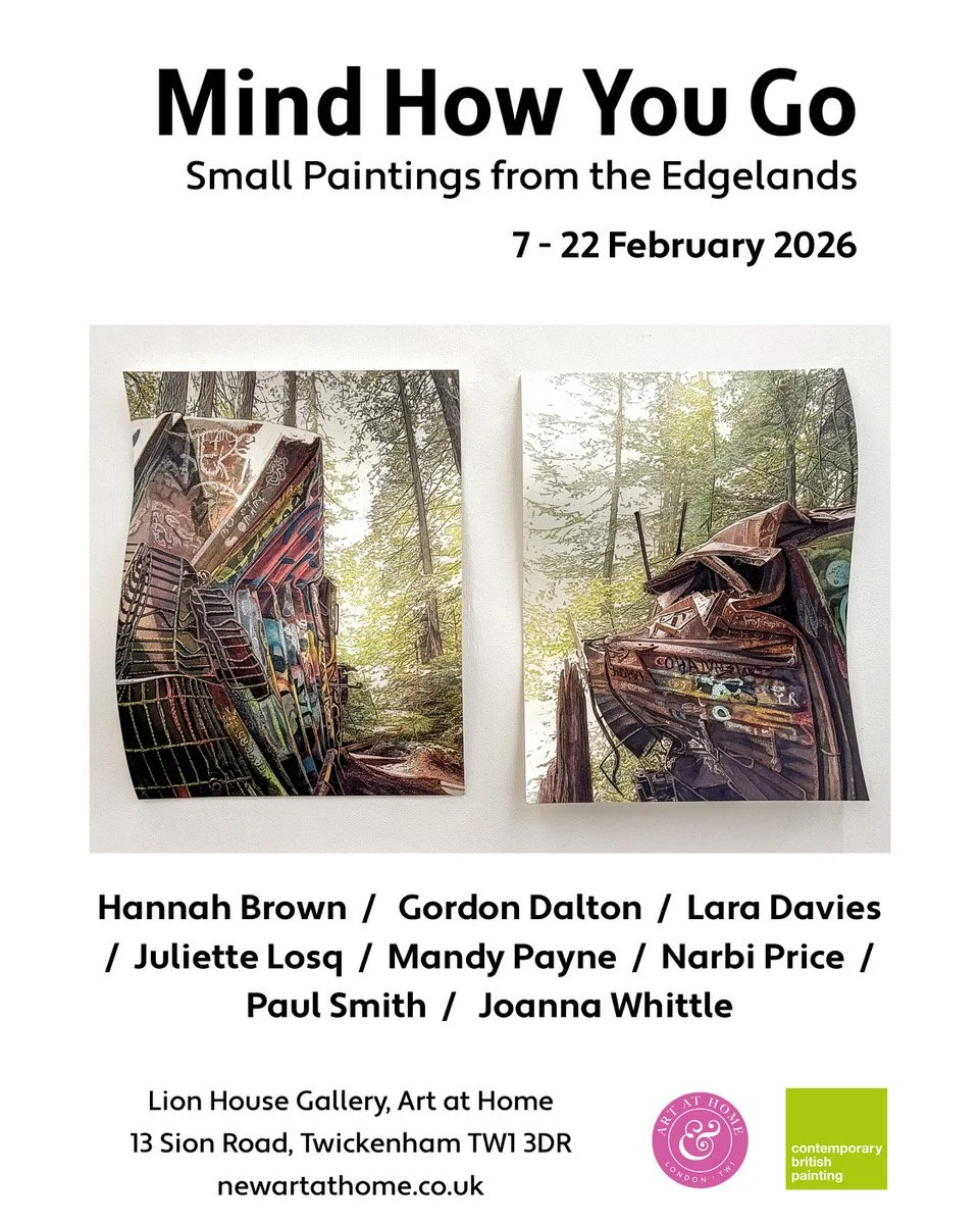 Small Paintings from the Edgelands @newartathome Lion House Gallery 13 Sion Lane TWICKENHAM TW1 3DR 7-22 February 2026 PV 6-8pm Friday 6th February Walk Through - Saturday 7th February 11am Sunday Salon - Sunday 15th February 11am (seated event - booking essential). This exhibition gathers together eight painters whose work has a distinctive take on looking at landscape. From the raw concrete of modern living and the Victorian terrace to the scrappy spaces around cities and towns where human presence is entangled with nature. In the edgelands trees and plants push through post-industrial ruins, follies and temporary dwellings draw attention in passing, unofficial paths of public desire run through scrub and bramble. At the coast the retreating cliff leads down to the beach with its specks of sea-coal, sea smooth brick and out to the high horizon. @mandypayne_97 @juliette_losq @narbiprice @hannahbrownartist @gordondalton666 @larad123 @jowhittleart With special thanks Kath @newartathome and to @paintbritain for their generous support.
